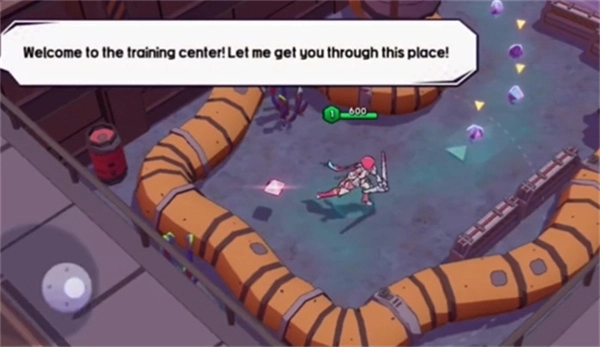 1、第一步是进入游戏,操控英雄持续前进,并收集地面上的晶石。