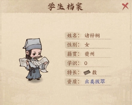 老白花了两天时间仔细琢磨,总算是摸清了些门路:每个学童身上都藏着和六艺(礼、乐、射、御、书、数)课程对应的潜在特长兴趣,要是学童的特长兴趣和所学课程对上了,就能学到更多东西。