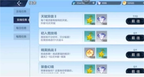 奥奇传说游戏中的支线任务往往比较零散,像给天赋升级10次、在竞技场进行一次战斗,或是通关某个特定关卡等都属于这类任务。完成支线任务能拿到不少奖励,所以也建议大家日常一定要做。