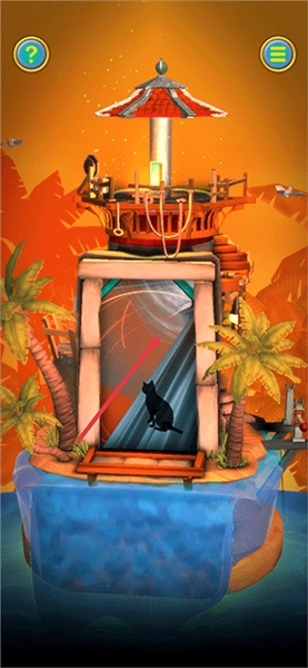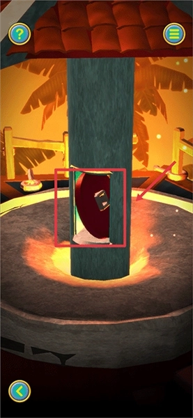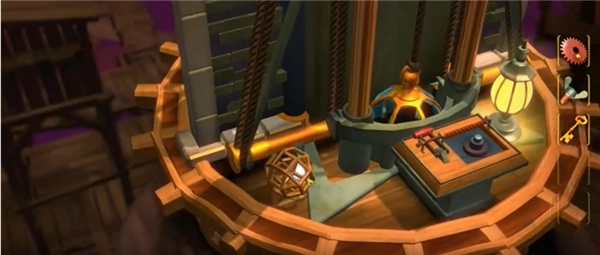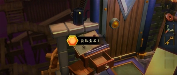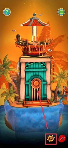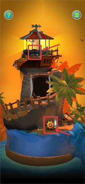 2、触发第二段教程后,先返回缩小画面,将灯塔转动到下图所示的角度,上方的盒子可滑动打开获取【红宝石】,下方则能获取【船轮】和【蓝宝石】