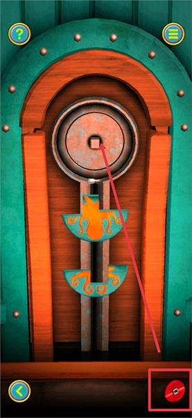 6、把【光碟】装到大门内侧的凹槽里,接着按照图示操作:先把【光碟】转到线条呈上下走向的位置,再把下方的碎片往上拉,就能将其装到【光碟】上;装好一个后,把【光碟】旋转180度,就可以继续安装下一个碎片了。