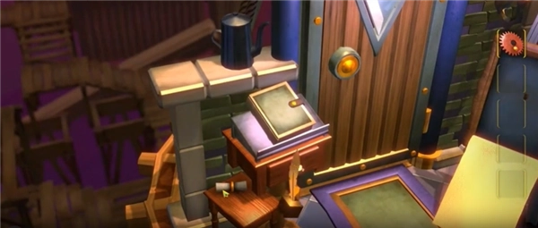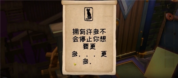 2、点击书架上的墨水瓶后,瓶后会出现一卷纸,纸上带有文字信息。