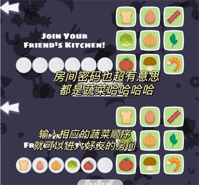3、其他玩家直接点击"JOIN"后输入对应的食物图标,加入房间即可体验多人联机的