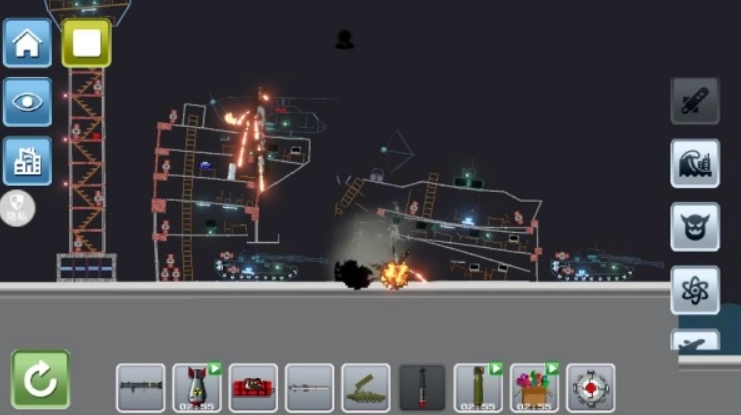模拟被毁灭是一款非常解压的沙盒模拟游戏,在这个游乐场中,你完全不用担心有任何道德或者其他压力,尽情的释放你的破坏欲吧!炸弹、陨石、龙卷风、海啸、火山喷发,这一刻你就是无所不能的神!游戏引入了真实的物理引擎,破坏坍落效果非常逼真。