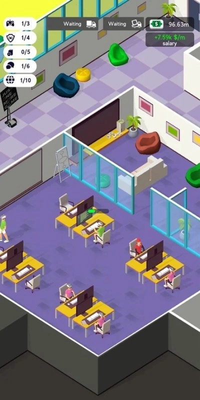 刚开始得从最基础的事情做起,比如布置工位、招募员工,在这个过程中不断积累经验,以此来提升等级。