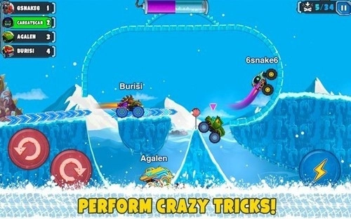 2、在赛道上可以拾取到各式各样的强化道具,点击右侧的按钮就能使用它们,合理运用这些道具能够明显增强车辆的性能。