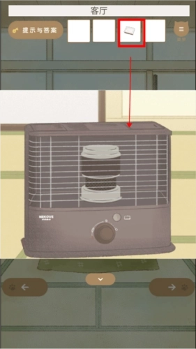 3、(客厅场景)点击火炉,打开其右侧的盖子,即可获取【油壶】这一道具。