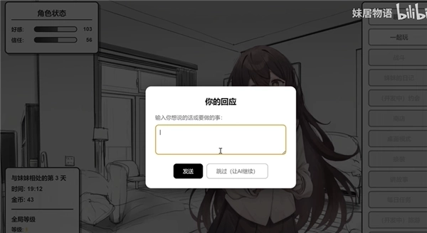 可以自己输入,也可以跳过,让ai继续生成剧情。