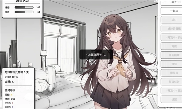 根据玩家的行为,yuki会进行一段思考,然后做出对应的判断。