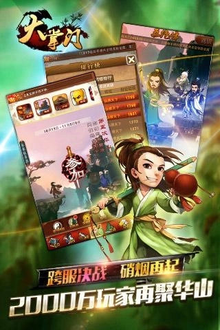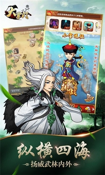 大掌门安卓版是一款源于玩家武侠梦的武侠风策略RPG精品卡牌手游,玩家在游戏中化身武学宗师,执掌门派,身怀各类神功,于江湖间招揽天赋卓绝的武学奇才,悉心培养门下弟子,率领他们闯过重重江湖关卡,守护襄阳以抗外敌;也能邀约江湖侠士组建联盟,合力围攻魔教巢穴,行惩奸除恶、剿匪除魔之举;还可参与一场场江湖论剑,最终登顶武林之巅,成就独步江湖的传奇!
