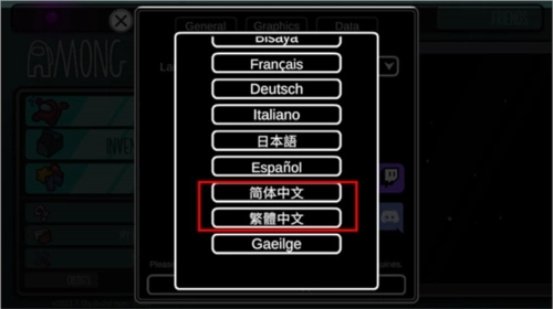 4、开启语言栏后,玩家通过下拉菜单选择简体中文或繁体中文,就能将游戏内语言设置为中文。
