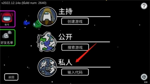 1、首先,我们要进入游戏的房间,既可以自己创建一个房间,也能选择加入其他玩家已有的房间。
