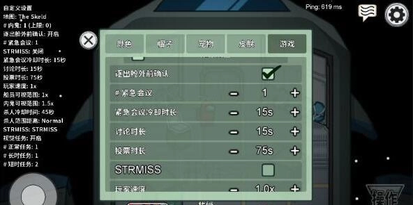 4、这里提供了丰富的设置选项,涵盖玩家移动速度、投票时长、视野范围以及任务数量等方面。