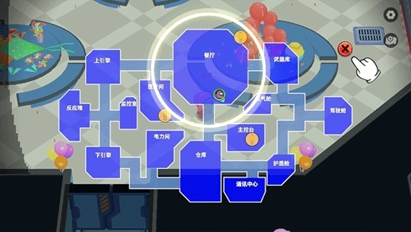 1、借助太空飞船内的各类设定来战胜对手,成为最终存活的队伍,赢得胜利。