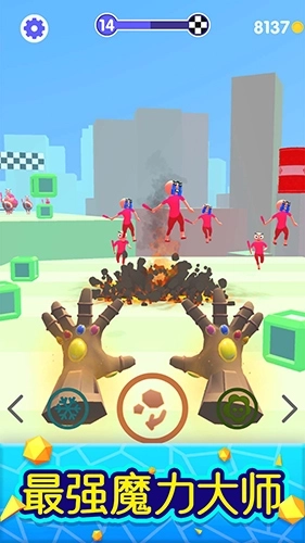 《魔力大师》是一款趣味十足的休闲闯关游戏,玩家将化身为一位拥有强大魔力的角色,通过操控双手不断向前推进,既要阻止那些小人的靠近、守护自身安全,又要尽可能收集能助力提升能力的道具!游戏操作极为简便,新手也能快速上手;游戏场景会持续切换,为玩家带来多样化的体验;玩法更是丰富多样,既有充满趣味的关卡挑战,还有解压畅快的打击玩法。感兴趣的小伙伴们,快来开启这段充满魔力的游戏之旅吧!