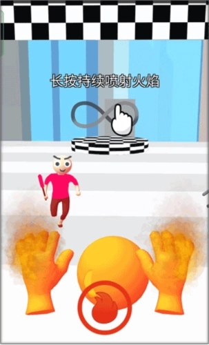 2、长按手机屏幕可以持续喷射火焰击败敌人。