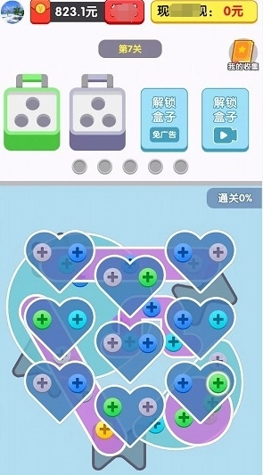 1、游戏整体界面精致美观,画面清晰透亮,操作顺滑流畅,目标是取下更多螺丝,使铁片掉落。