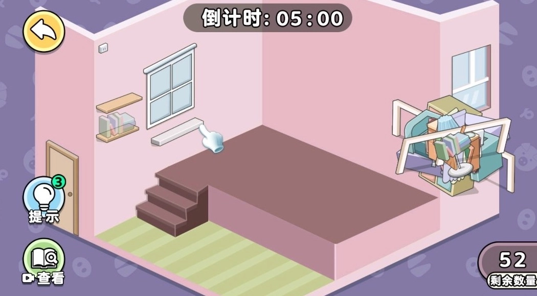 2、房间整理挑战:玩家需静下心来收拾每个房间里的杂物,在整理的过程中体会其中蕴含的美感,同时享受空间变得干净整洁的惬意时光。