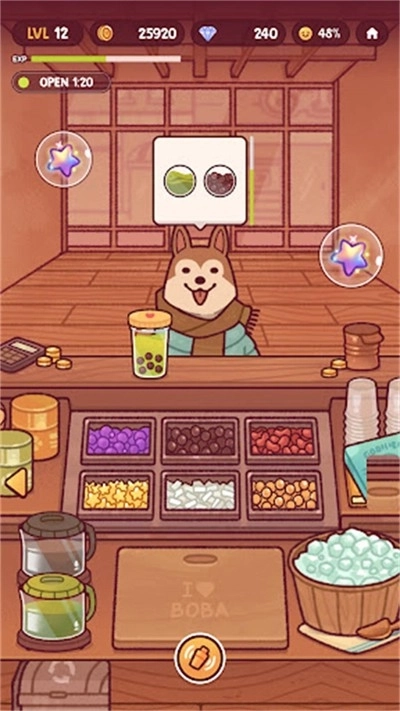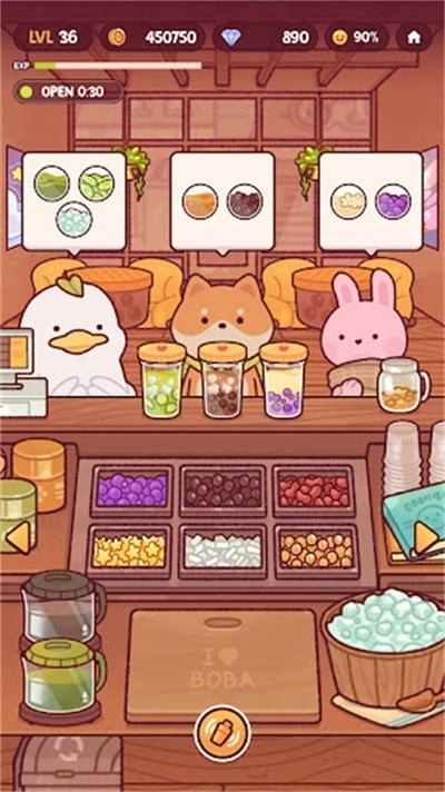 2、在有限时间内,制作出更多口味的奶茶,收集更多的材料进行使用,游戏融合了经营模拟与操作挑战玩法。